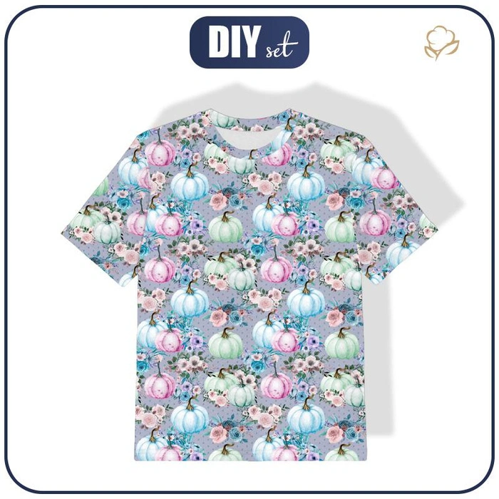 KID’S T-SHIRT - PUMPKINS AND FLOWERS pat. 1 (PUMPKIN GARDEN) - single jersey