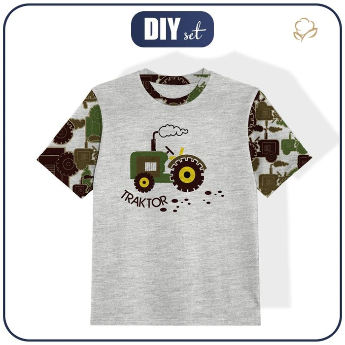 KID’S T-SHIRT- TRACTOR GREEN/ melange light grey- single jersey (92/98)