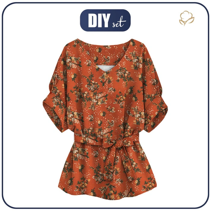 KIMONO BLOUSE - MINI FLOWER BOUQUET / brick - sewing set