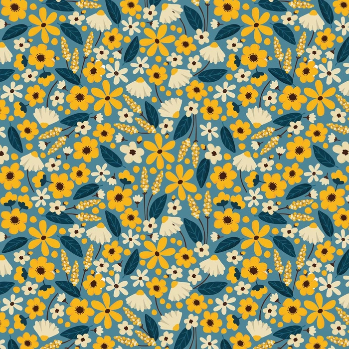 SMALL FLOWERS pat. 2 / blue - Viscose jersey