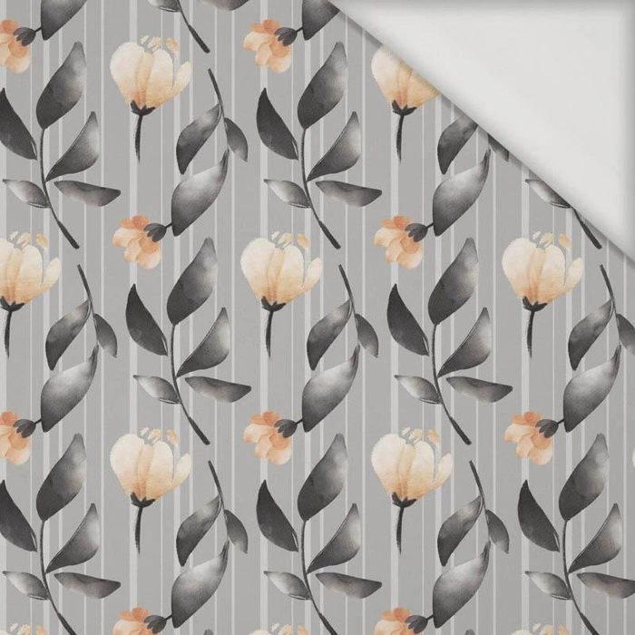 FLOWERS AND LEAVES pat. 6 / grey - Viscose jersey