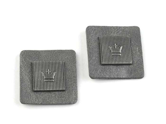 Decorative Cloting Label with crown. The label is made of eco leather and pin is firmly attached to it.