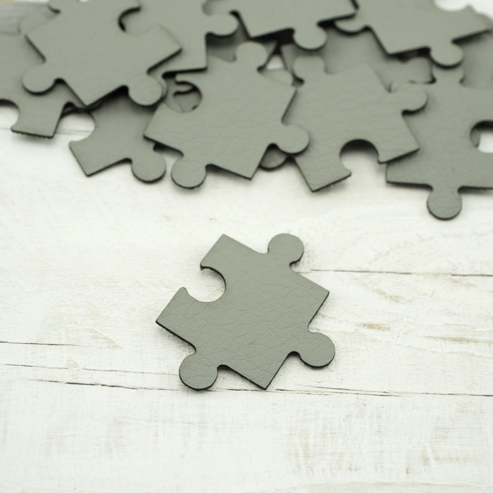 Leatherette label Puzzle - grey