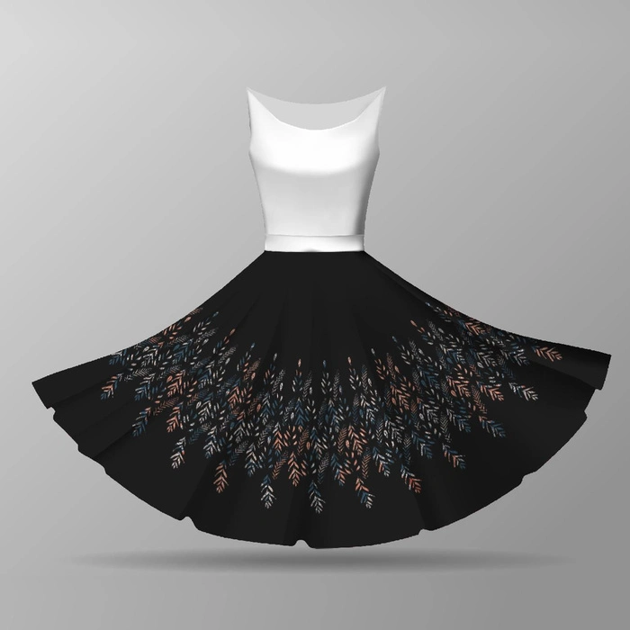 The print was made using digital printing, it is imperceptible. Thanks to the use of polyester, the fabric is ideal for printing all dark and heavily saturated patterns, and the print is resistant to abrasion.The circle skirt panel will be perfect for sewing skirts, but also dresses, wraps, blouses, tunics and nightwear, and wherever you need a pattern arranged in a circle.