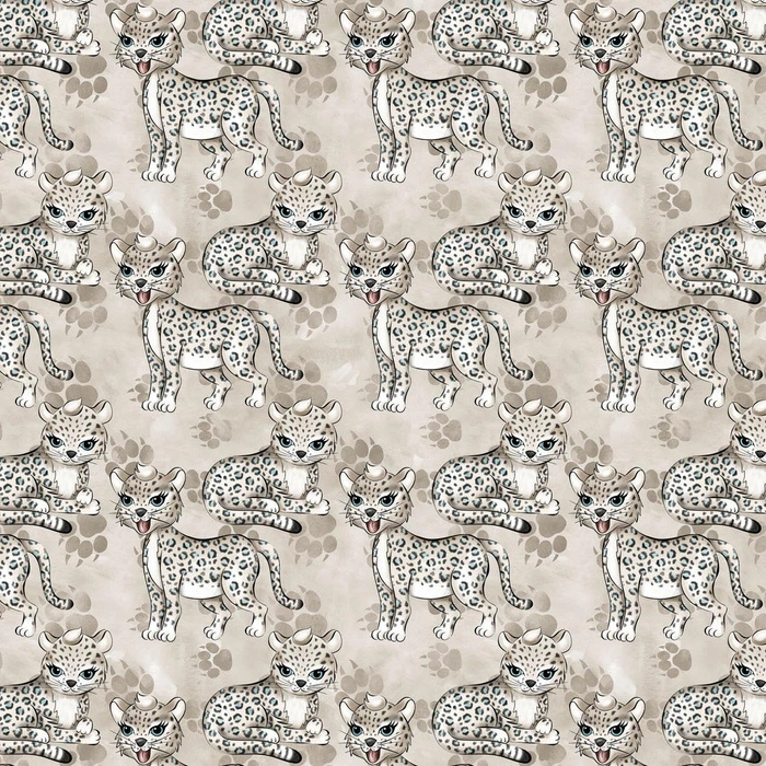 Sewing fabric with the LEOPARD / paw prints (SNOW LEOPARDS) printed motif