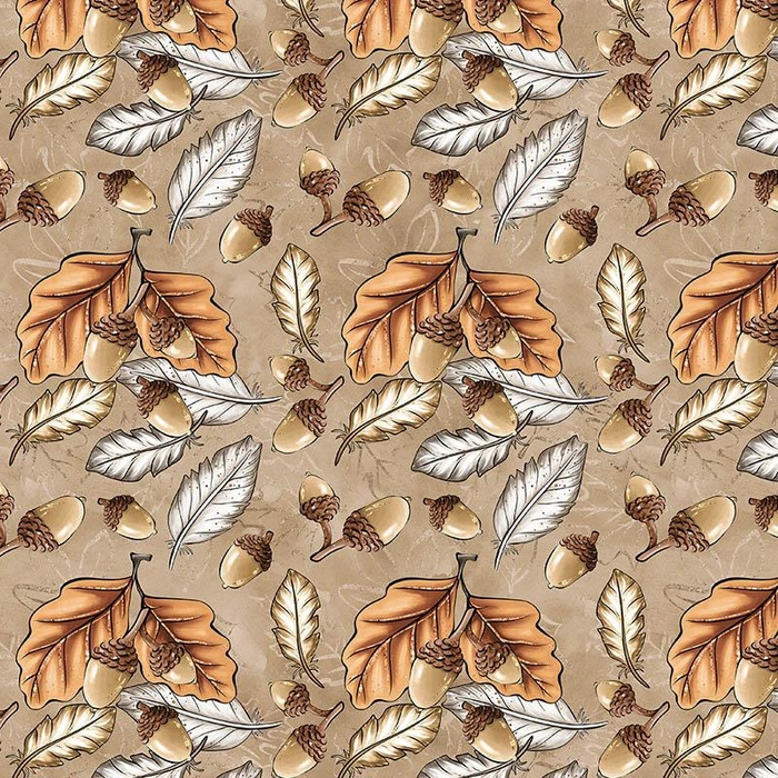 LEAVES AND ACORNS pat. 3 (AUTUMN IN THE FOREST) - Cotton woven fabric