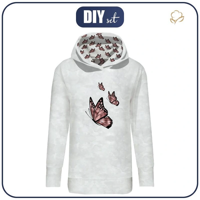 LONG WOMEN’S HOODIE (MEGI) - BUTTERFLY pat. 3 (GLITTER BUTTERFLIES) - looped knit fabric - L