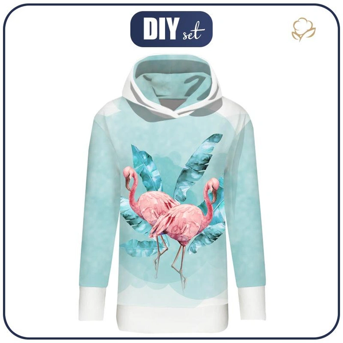 LONG WOMEN’S HOODIE (MEGI) - FLAMINGOS pat. 2 - looped knit fabric - XXL