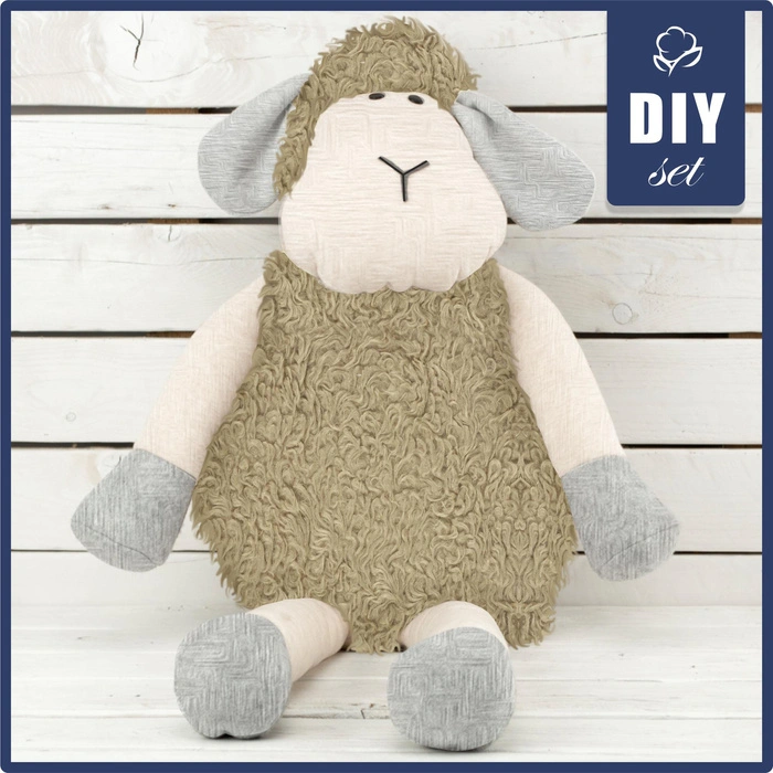 In the set you will find all necessary products for sewing a sheep mascot. All parts are packed in a cardboard box.