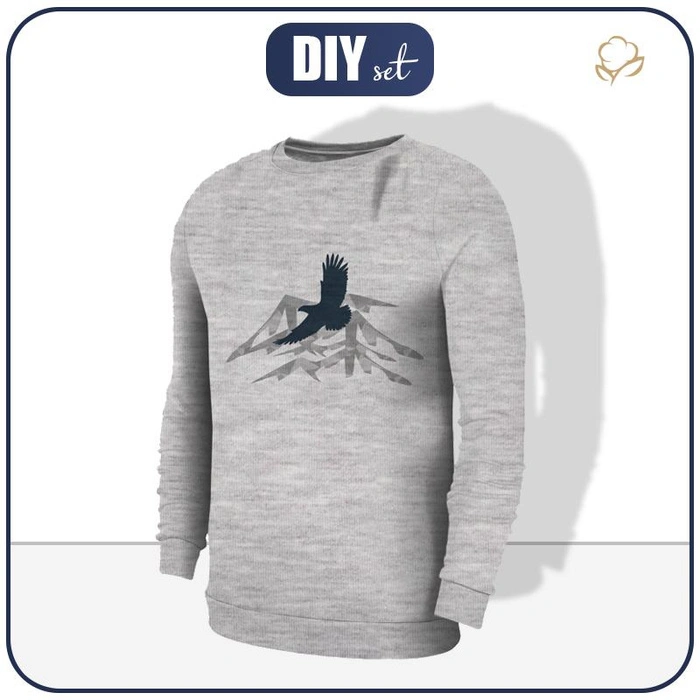 MEN’S SWEATSHIRT - EAGLE (ADVENTURE) / melange light grey - Elastic brushed knit fabric XS