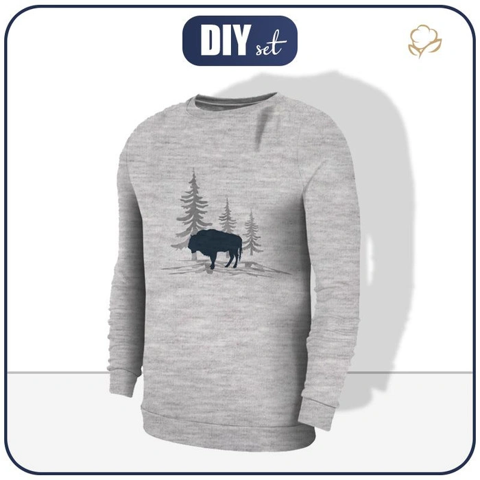 MEN’S SWEATSHIRT - EUROPEAN BISON (ADVENTURE) / melange light grey - Elastic brushed knit fabric L