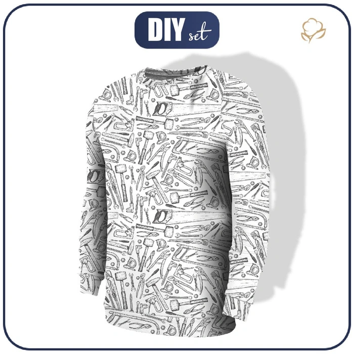 MEN’S SWEATSHIRT - TOOLS ( grey ) / white - Elastic brushed knit fabric XXL
