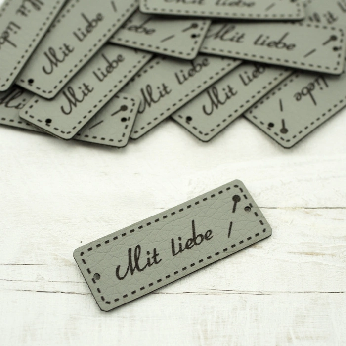 Decorative Cloting Label with sign "Mit liebe". The label is made of eco leather and has holes on sides for easy attachement.