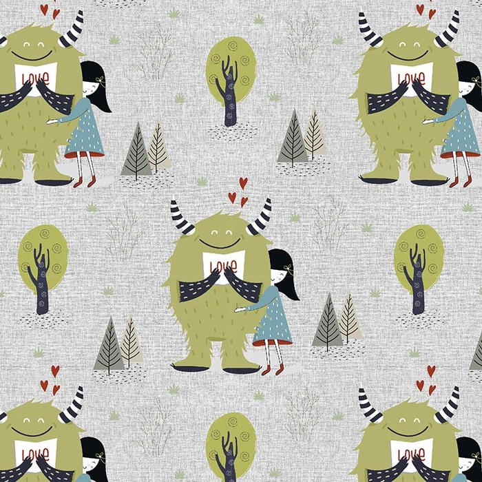 Sewing fabric with the MY MONSTER FRIEND printed motif