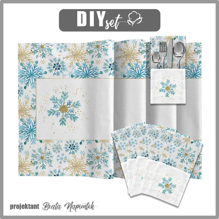 NAPKINS AND RUNNER - BLUE SNOWFLAKES - sewing set