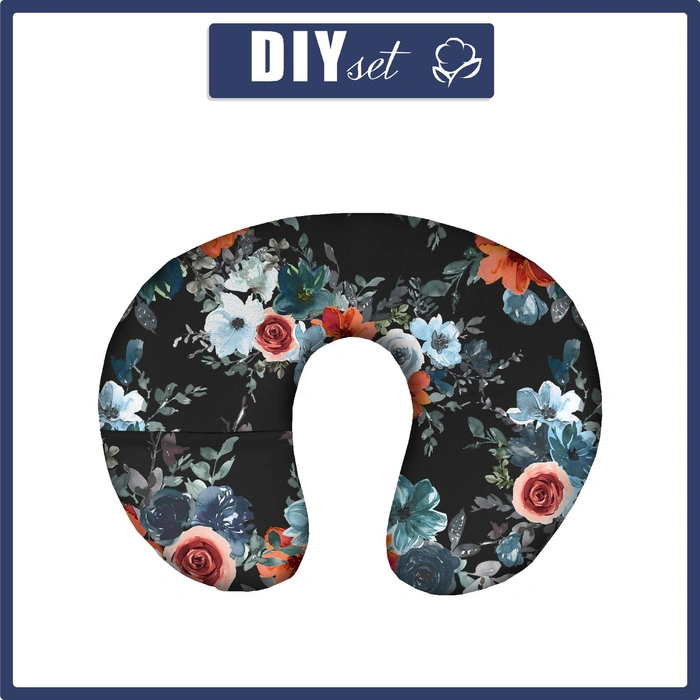 NECK PILLOW - WATER-COLOR FLOWERS pat. 2 / black - sewing set