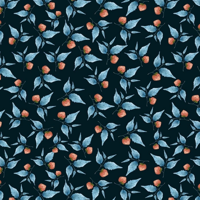 BLUE LEAVES / black - Waterproof woven fabric
