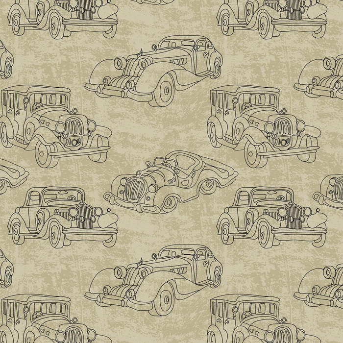 Sewing fabric with the OLD CARS pat. 2 printed motif
