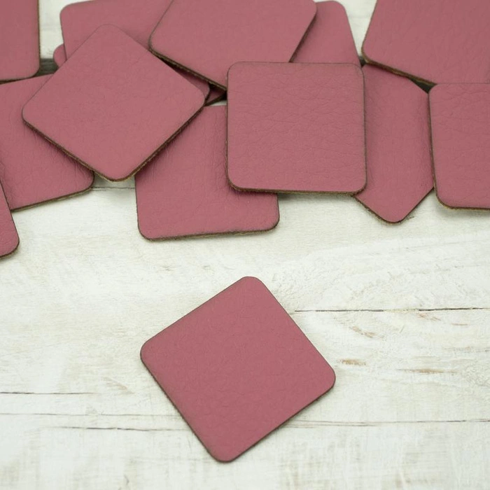 Decorative Label is made of wrinkled eco leather shaped as a big square. The rims of the labels are rounded.