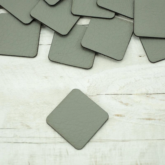 Pads under the eyelets Leatherette label small square - grey