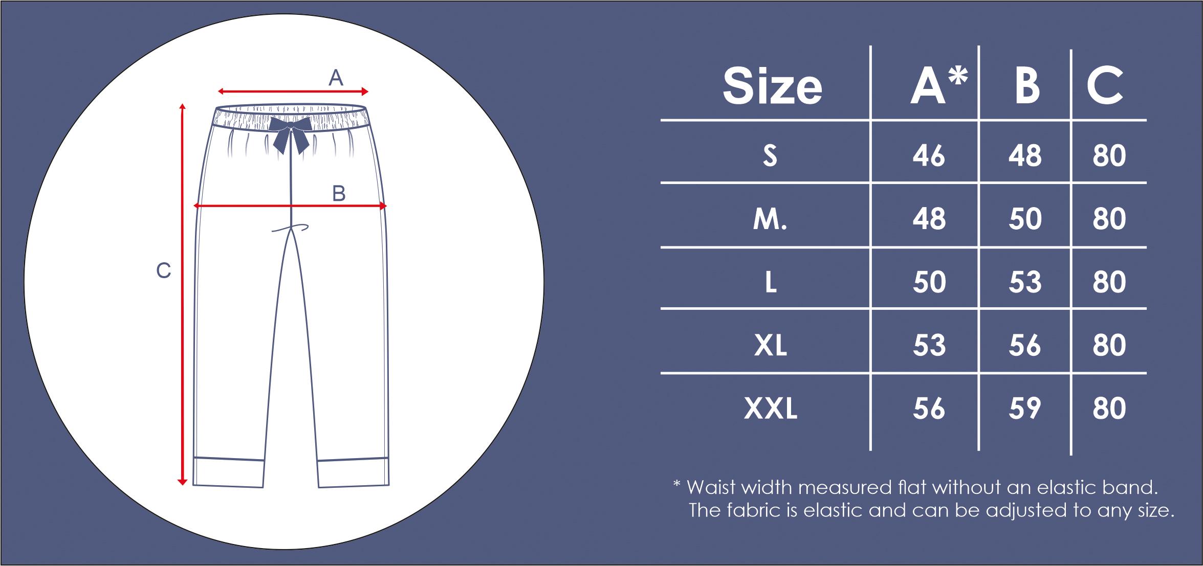 A simple cut and stretchy jersey is a recipe for success! The pants are of course suitable as pajama bottoms, but who says you can't also wear them for jogging, going out shopping or for any other activity where freedom of movement is important.