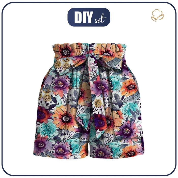 PAPERBAG SHORTS - WATER-COLOR FLOWERS pat. 6 - sewing set XS