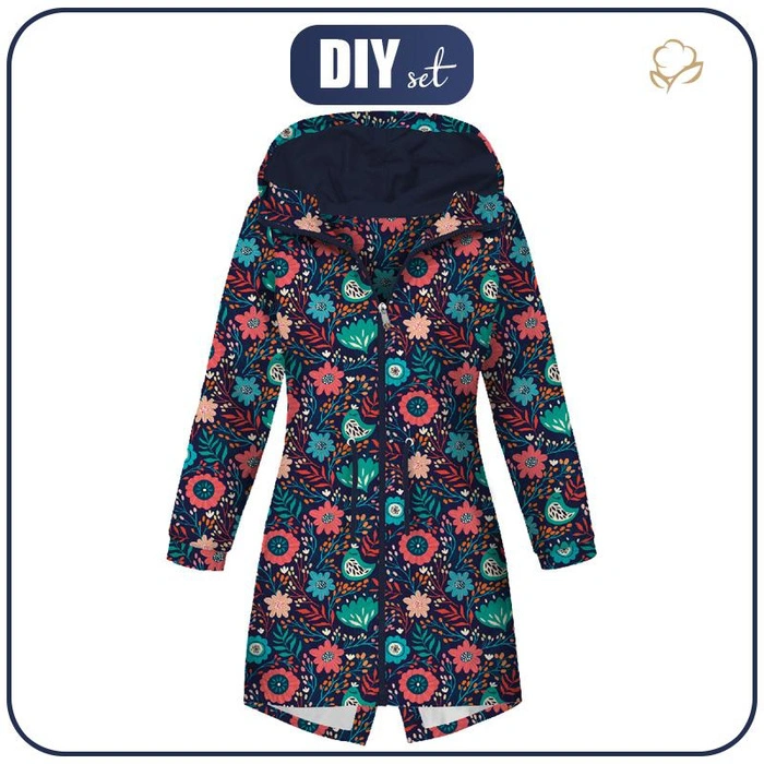 WOMEN'S PARKA (ANNA) - FOLK BIRDS / navy - softshell