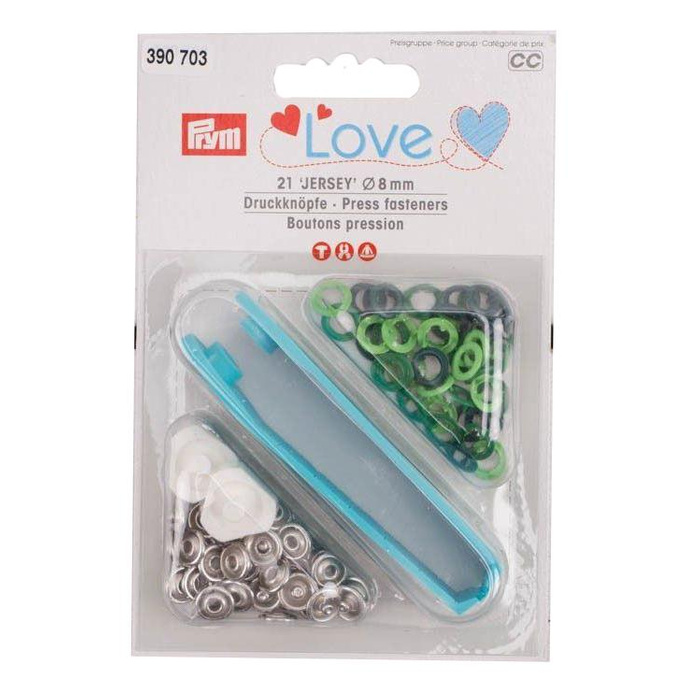 Press Fasteners for jersey 8mm light green, green , bottle green - PRYM 390703