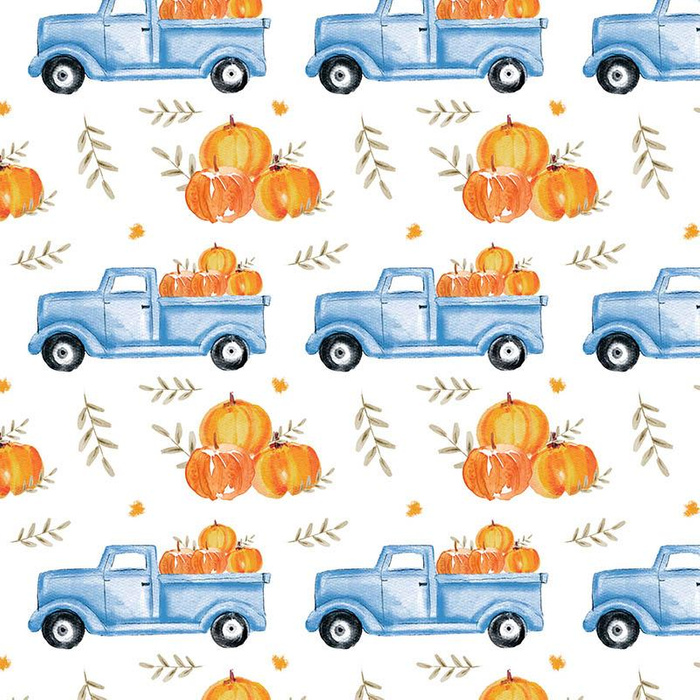 Pumpkins that look like painted and carts that someone drew with a steady hand. This is how the Pumpkins on the pickup / leaves pattern looks like.