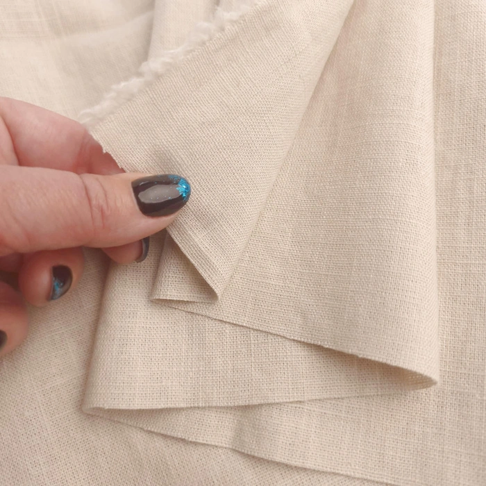 Ramie with cotton is breathable, lightweight, and very pleasant to the touch. Thanks to its airy structure, it is perfect for apparel in the spring-summer season as well as for sewing decorative accessories.