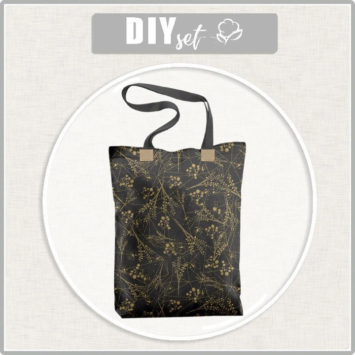 SHOPPER BAG - LEAVES pat. 12 (gold) / black - sewing set