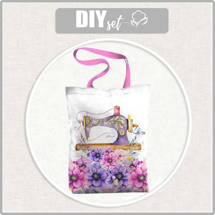 SHOPPER BAG - SEWING MACHINE AND FLOWERS - sewing set