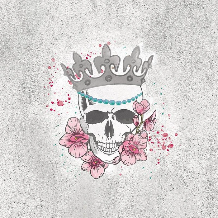 Sewing fabric with the SKULL QUEEN / concrete printed motif