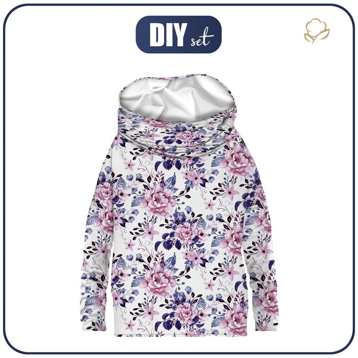 SNOOD SWEATSHIRT (FURIA) - WILD ROSE FLOWERS PAT. 1 (BLOOMING MEADOW) (Very Peri) - looped knit fabric - M