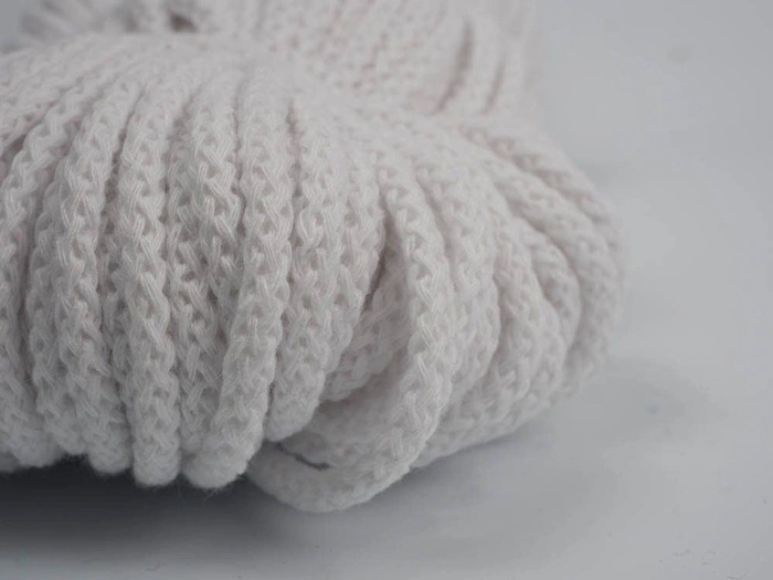 Cotton cord with acrylic core in a color very similar to the color of the cotton braid. Mainly designed for handicrafts, clothing and textiles. It is perfect as a puller for hood, sports wear, trousers, sweatshirts, but also in footwear accessories.