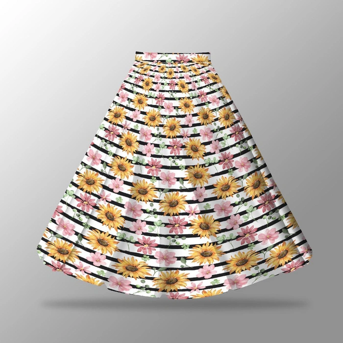 SUNFLOWERS / stripes - skirt panel "MAXI" - crepe
