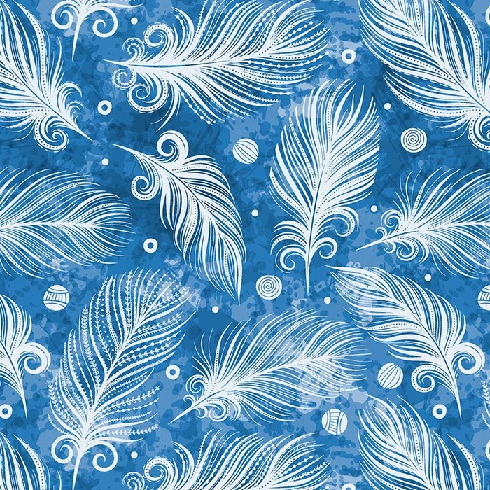 WHITE FEATHERS (CLASSIC BLUE) - looped knit fabric