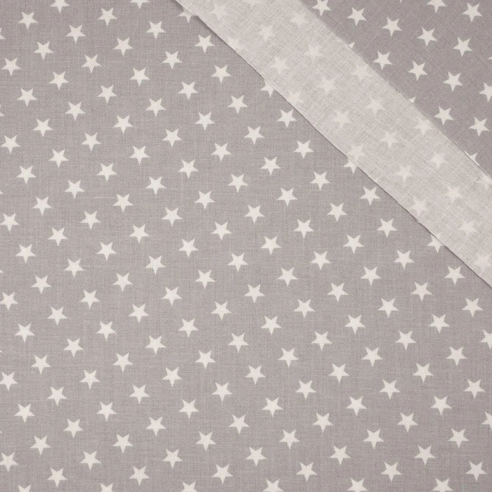 WHITE STARS / grey - Cotton woven fabric