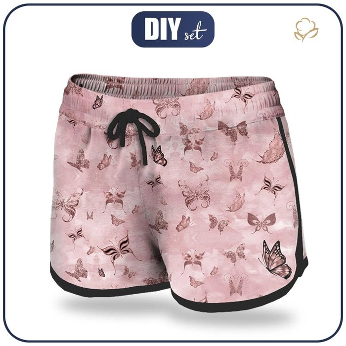 Women’s boardshorts - BUTTERFLIES (GLITTER BUTTERFLIES) / CAMOUFLAGE pat. 2 (rose quartz) XL