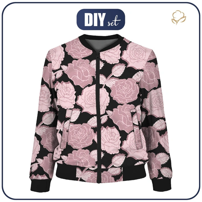 WOMEN’S BOMBER JACKET (KAMA) - PINK ROSES PAT. 5 / black - sewing set M