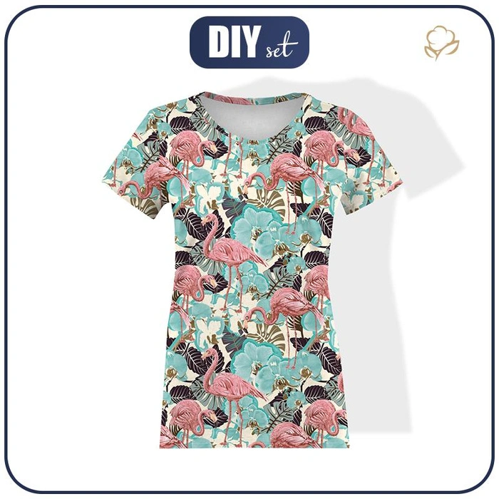 WOMEN’S T-SHIRT - FLAMINGOS AND MONSTERAS - single jersey S