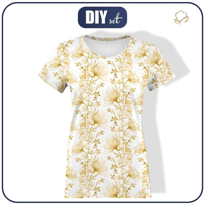 WOMEN’S T-SHIRT - FLOWERS pat. 4 (gold) - single jersey