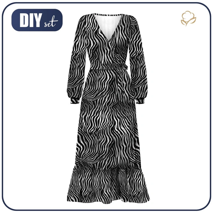 WRAP FLOUNCED DRESS "ABELLA" (M) - ANIMAL SKIN pat.2 - sewing set