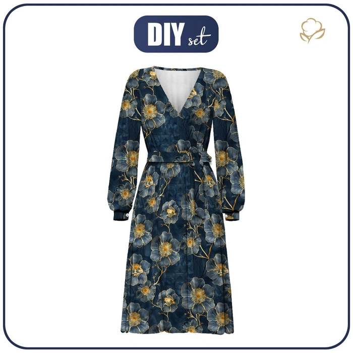 WRAP MIDI DRESS "BIANCA" (L) - FLOWERS wz.20 - sewing set
