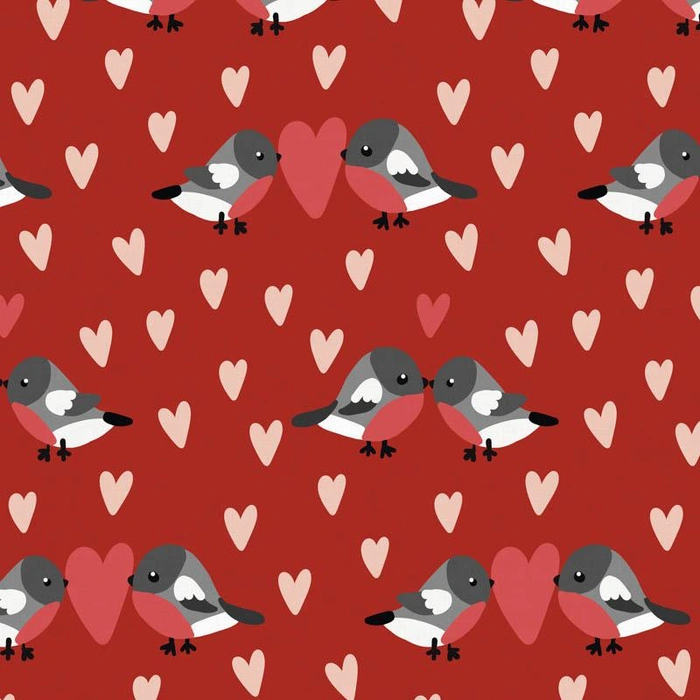 BIRDS IN LOVE PAT. 2 / RED (BIRDS IN LOVE) - Cotton woven fabric